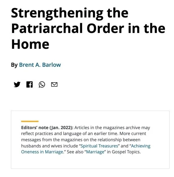 This article is a recent example of changes being made to older articles that are very explicit in the roles that a husband and wife have.